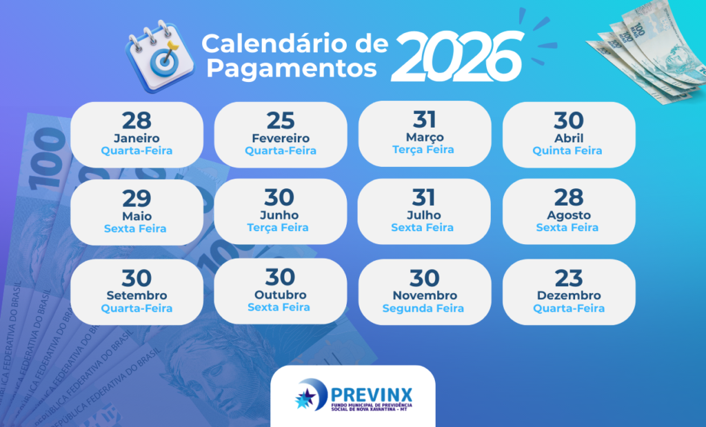 O pagamento da folha dos aposentados e pensionistas do PREVINX é realizado até no último dia útil do próprio mês de referência.